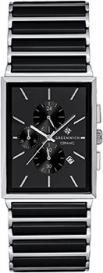 Мужской кварцевый хронограф. Механизм Miyota. Центральные часовая, минутная и секундная стрелки. 12/24х часовой формат времени. Секундомер. Черный циферблат. Прямоугольный корпус выполнен из нержавеющей стали. Размер корпуса составляет 34 х 47 мм. Стальной браслет с керамическими вставками, раскладывающаяся застежка. Прочное минеральное стекло устойчивое к мелким механическим повреждениям. Водостойкость WR 50 (мытье рук, дождь).