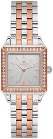 Женские кварцевые часы. Центральные часовая, минутная и секундная стрелки. Серебристый циферблат. Квадратный корпус выполнен из нержавеющей стали с IP покрытием цвета розового золота и декорирован кристаллами. Размер корпуса составляет 23,5 х 23,5 мм. Стальной браслет с покрытием, раскладывающаяся застежка. Прочное минеральное стекло устойчивое к мелким механическим повреждениям. Водостойкость WR 30 (брызги).