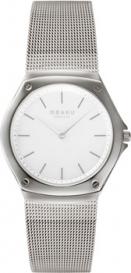 Женские кварцевые часы. Центральные часовая и минутная стрелки. Белый циферблат. Круглый корпус выполнен из нержавеющей стали. Диаметр корпуса составляет 33 мм, толщина 4,8 мм. Заводная головка с защитой. Стальной браслет выполнен в технике миланского плетения, раскладная застежка. Устойчивое к возникновению царапин сапфировое стекло. Водостойкость WR 30 (брызги).