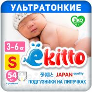 EKITTO Подгузники 2 размер S ультратонкие для новорожденных детей 3-6 кг на липучках