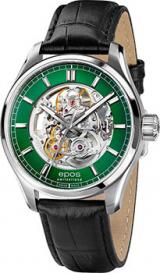 Мужские механические часы с автоподзаводом. Калибр механизма Sellita SW200 на 26 камнях. Частота 28 800 полуколебаний в час. Запас хода 38 часов. Функция стоп-секунды. Центральные часовая, минутная и секундная стрелки. Зеленый скелетонизированный циферблат. Люминесцентные стрелки и метки. Круглый корпус выполнен из нержавеющей стали. Диаметр корпуса составляет 41 мм, толщина 10,5 мм. Черный кожаный ремешок шириной 20 мм, стандартная застежка. Устойчивое к возникновению царапин сапфировое стекло. Прозрачная задняя крышка. Водостойкость WR 100 (плавание без погружения).