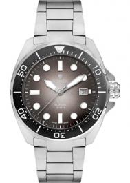Кварцевые часы. Водостойкость WR 200. Центральные часовая, минутная и секундная стрелки. Индикация даты. Стрелки и метки с люминесцентным покрытием. Серый циферблат с часовыми индексами в виде штрихов и точек. Корпус выполнен из нержавеющей стали. Диаметр корпуса 44 мм. Устойчивое к возникновению мелких механических повреждений сапфировое стекло. Браслет выполнен из нержавеющей стали.