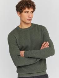 Однотонный мужской джемпер из тонкого хлопкового трикотажа фактурной вязки станет идеальной основой для создания множества сдержанных базовых или модных многослойных образов на каждый день. Модель представлена в больших размерах. - Прямой силуэт - Круглый вырез - Длинный рукав - Вязаная резинка-риб на вырезе, манжетах и нижней кромке Размер на модели: М. Рост модели: 184 см. ОГ-ОТ-ОБ: 98,5-75-93 см.